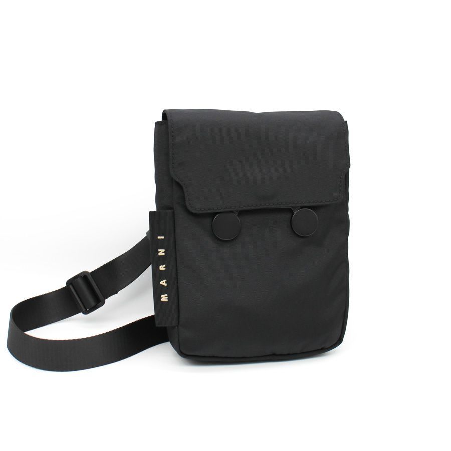 MARNI マルニ (TEMI0021A0 P8184) ブラック ナイロン Cityscape iPhone スマホホルダー クロスボディバッグ ショルダーバッグ ロゴ 鞄 レディース メンズ ユニセックス フロントフラップ 軽量