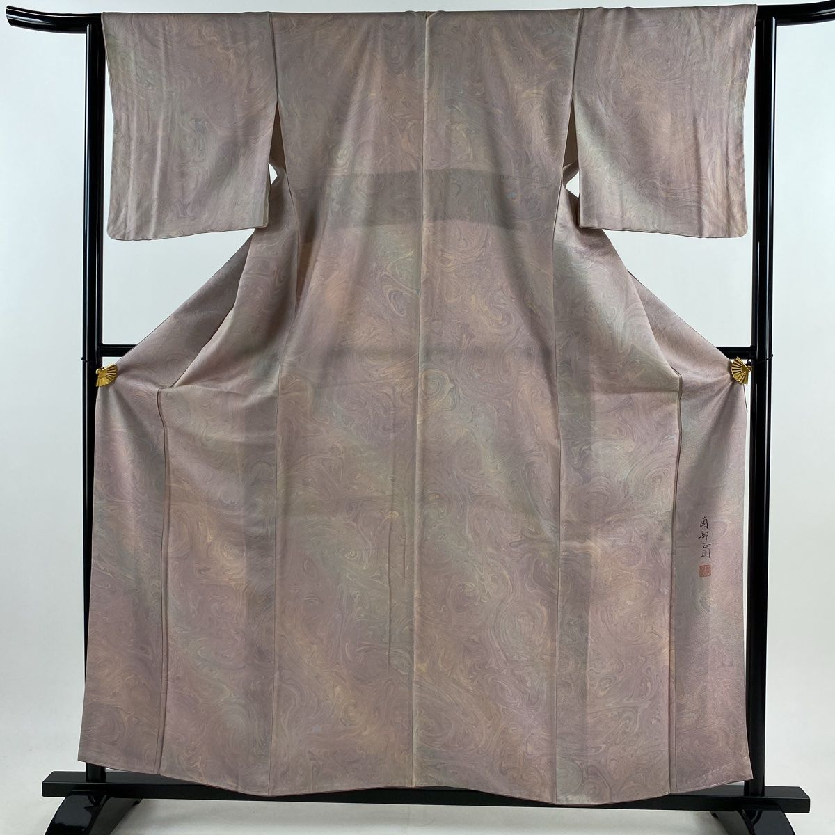 小紋 身丈159 cm 裄丈62 S 袷 薗部正則 鈴乃屋 落款 墨流し ピンク 正絹