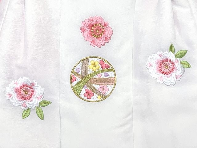 七五三 3歳 着物 女の子 被布コートと着物オリジナル コーディネートセット 合繊 白xピンク 鞠と桜 HHFb 04-495 set