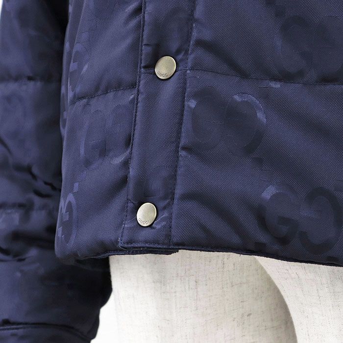 GUCCI グッチ ジャケット パテッド リバーシブル コーデュロイ ジャンボGG ロゴ モノグラム インターロッキング レザーパッチ ポリエステルジャガード 中綿 ジージャン トラッカー コットン ハンガー付 メンズ 52 ネイビー 紺 イタリア製