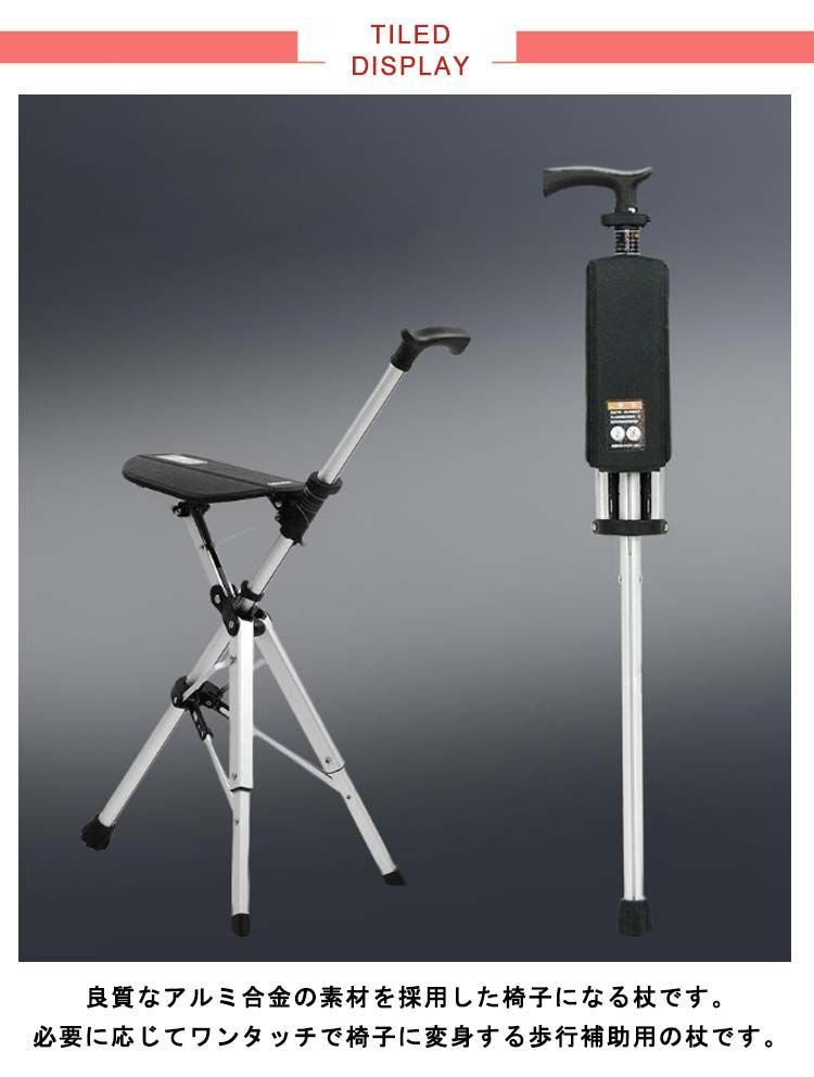 ステッキチェア 椅子になる杖 一本杖 一脚杖 ステッキ チェアー 祖父母 プレゼント 杖 おしゃれ 三脚 椅子 軽量 折りたたみ イス アルミ製 ワンタッチ 散歩 ハイキング 旅行 行列 運動 Jb 0 v 107