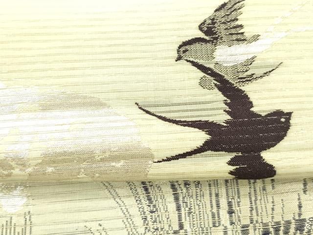 平和屋着物 夏物 アンティーク 大正ロマン 丸帯 燕 立波文 銀糸 正絹 cm