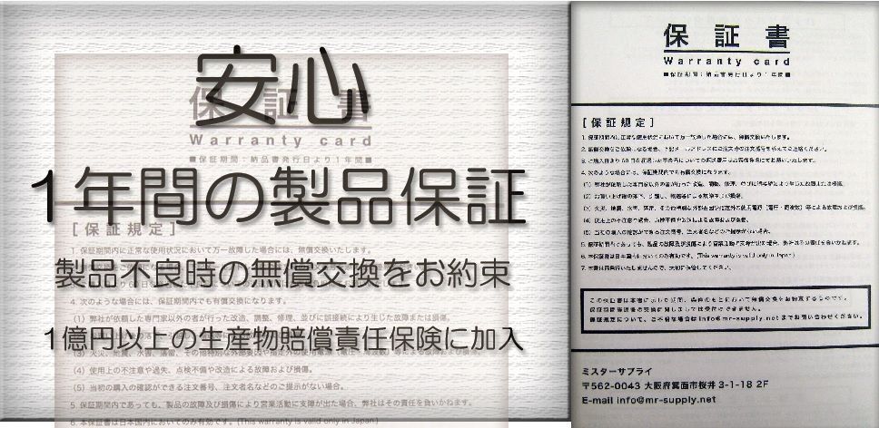 ご購入より1年の間に充電不良などの問題が発生した場合は、保証規定に基づき速やかにご対応させていただきます。