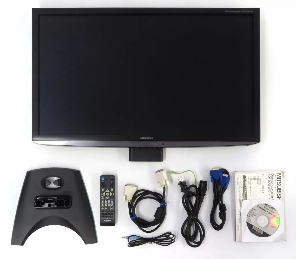 同梱品:電源コード、D-SUBケーブル、DVIケーブル、オーディオケーブル、ベーススタンド、ユーティリティーディスク、専用リモコン