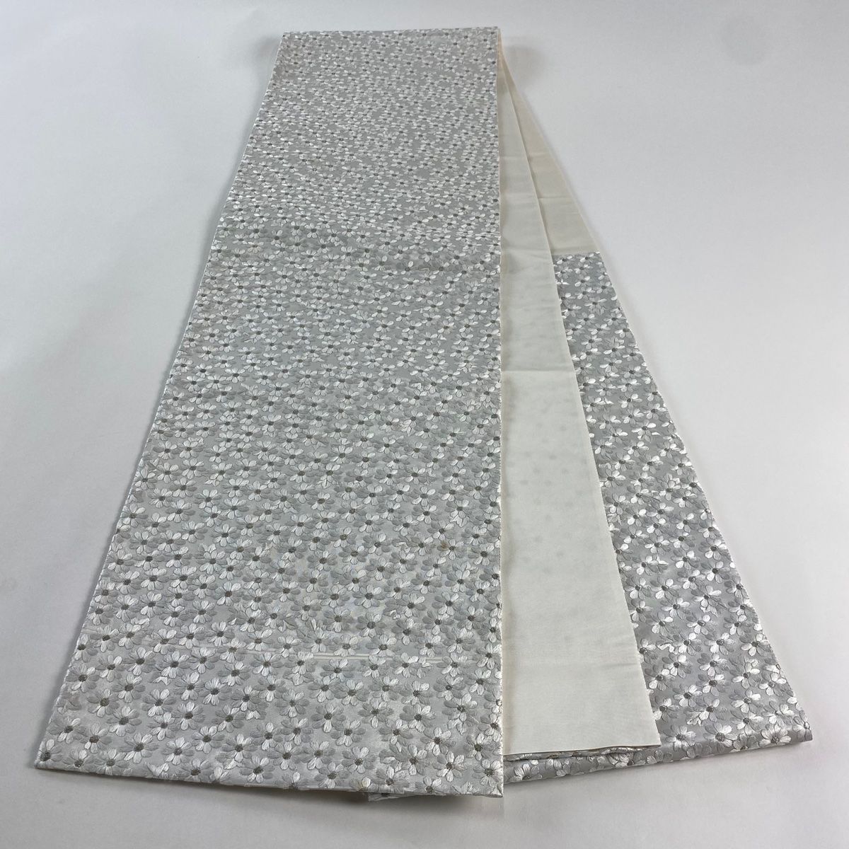 袋帯 花 金銀糸 箔 灰白 六通 正絹