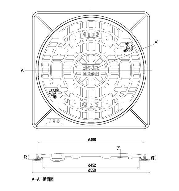 城東リプロン マンホール 蓋 角枠 ロック付き 直径496 mm耐荷重1000 kg JM 450 A 1 Joto マンホールカバー 錆びない 樹脂製 浄化槽用 小型合併浄化槽 雨水蓋 排水 枡 セット ふた