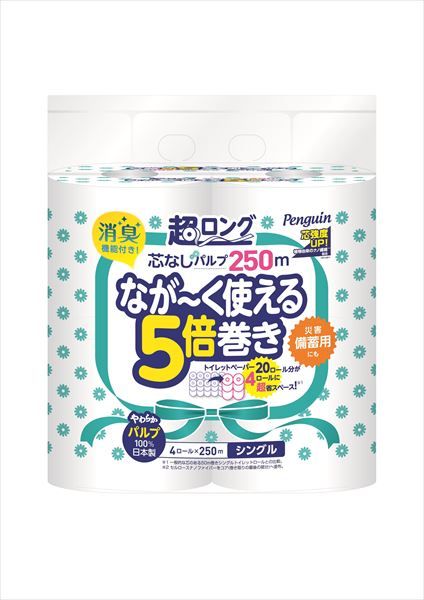 8点セット ペンギン 芯なし超ロング パルプ 250M シングル 4ロール 丸富製紙
