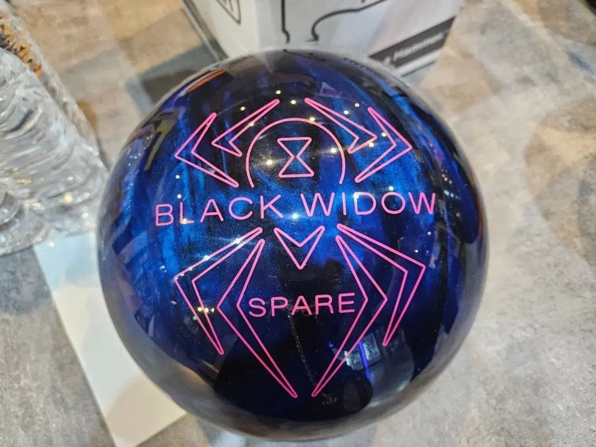 ブラックウィドウスペアハードボール 14Pボウリングボール。青い背景にピンクのクモの巣のマークが印象的です。予備品の取り扱いの練習に最適です。別途以上ご不明な点がございましたら、すぐに安全な支払いを行ってください。これはパッケージです。