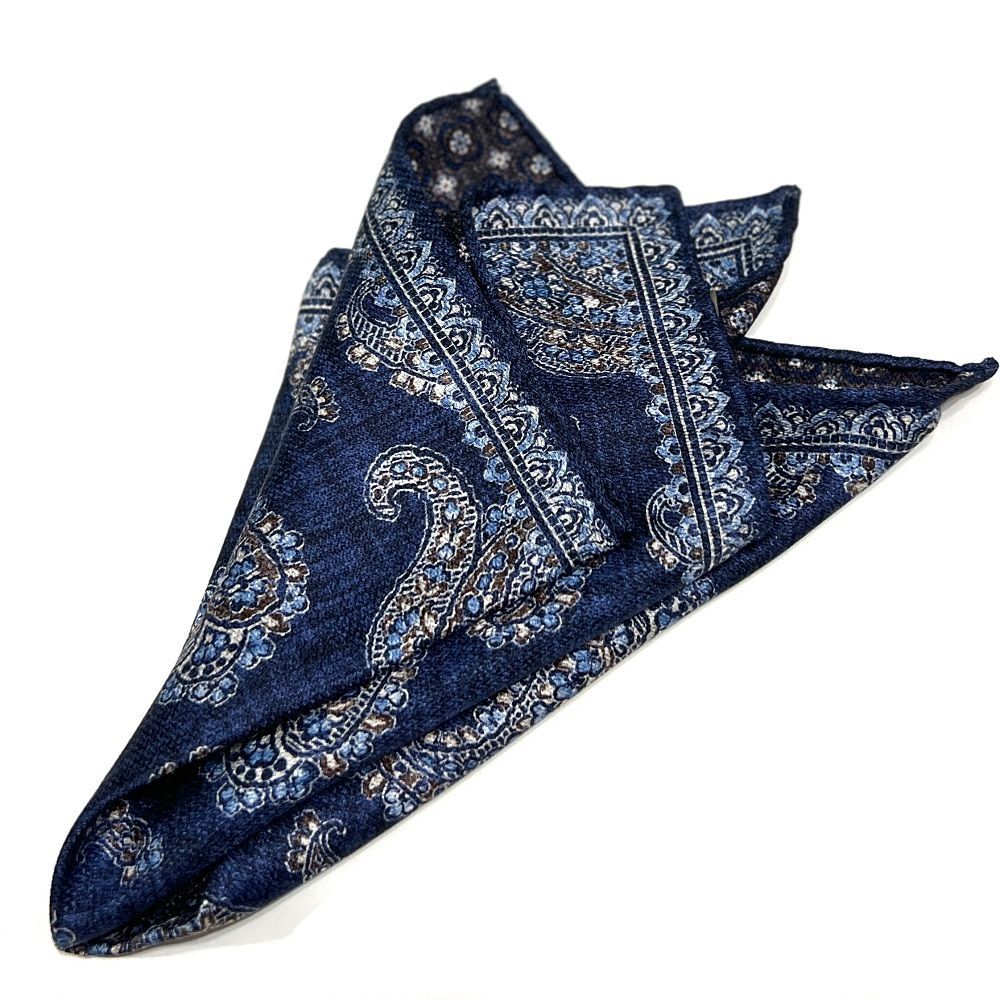 ROSI COLLECTION ロージ ポケットチーフ ペイズリー柄 裏 小紋柄 ダブルフェイス シルク ハンドメイド イタリア製