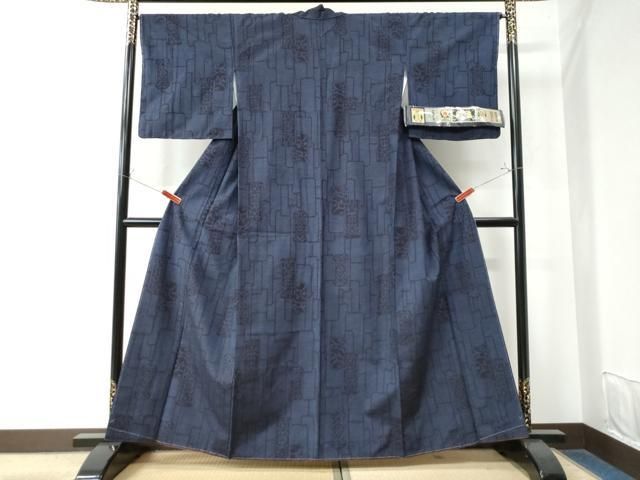 平和屋着物 本場真綿結城紬 短冊重ね唐草文 証紙付き 正絹 yc