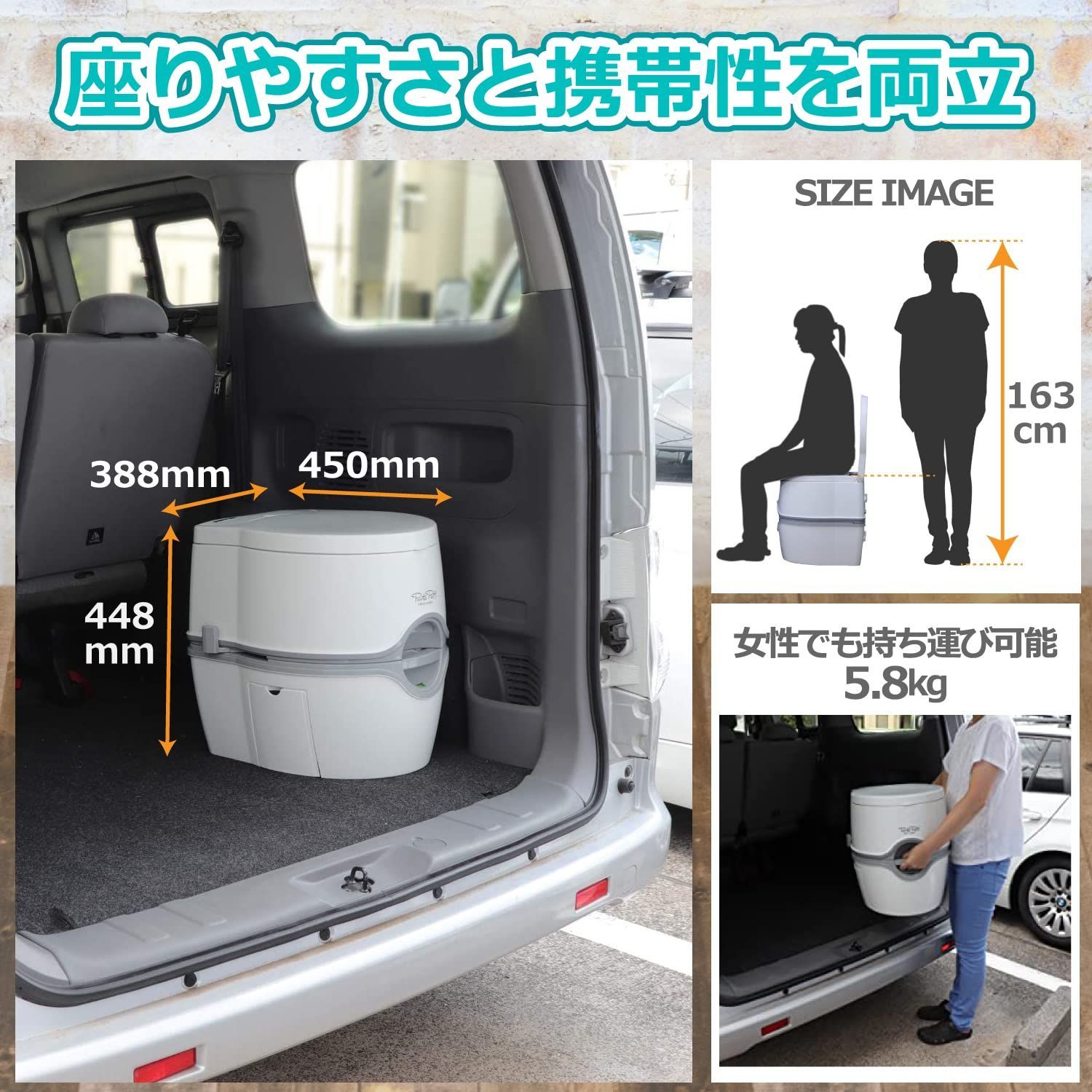 また、捨て時が一目でわかる「汚物タンク目盛り」付きです。