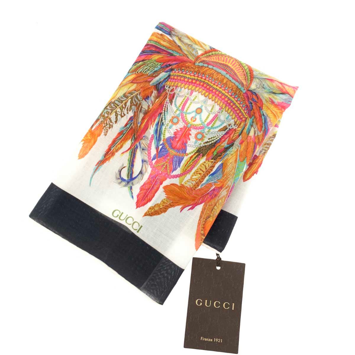GUCCI グッチ ミニスカーフ ホワイト フェザー 羽 コットン100% レディース