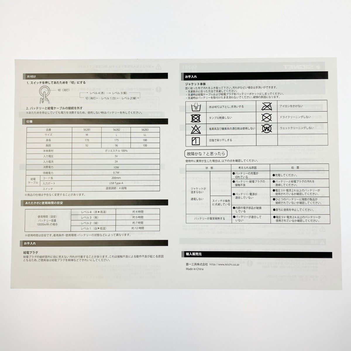 喜一工具 SIGNET USB スタイル J-ウォーマー ウルトラヒートジャケット M 開封
