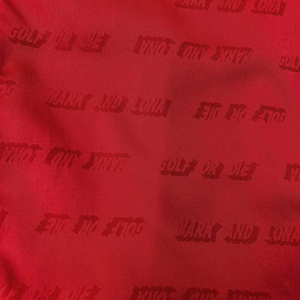 サイズ 48 MARK-LONA マークアンドロナ ジップパーカー ジャケット 英字総柄 レッド系 ゴルフウェア メンズ ストスト