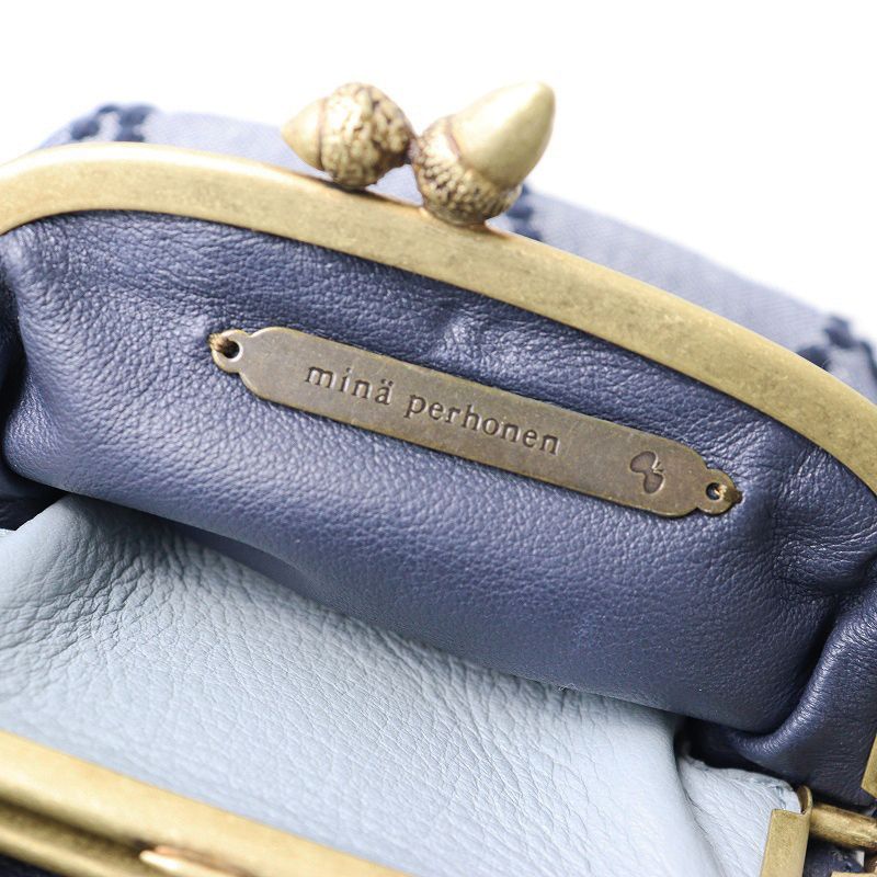 【品名】美品 ミナペルホネン mina perhonen tambourine カドルパース ネイビー┃がま口ポーチ 財布 ウォレット タンバリン