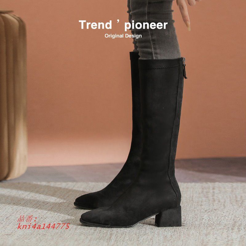 ロングブーツ ニーハイブーツ レースアップ ブーツ ラウンドトゥ ローヒール ジョッキーブーツ 厚底 カジュアル バックジップ 美脚 履きやすい kni 4 a 144775