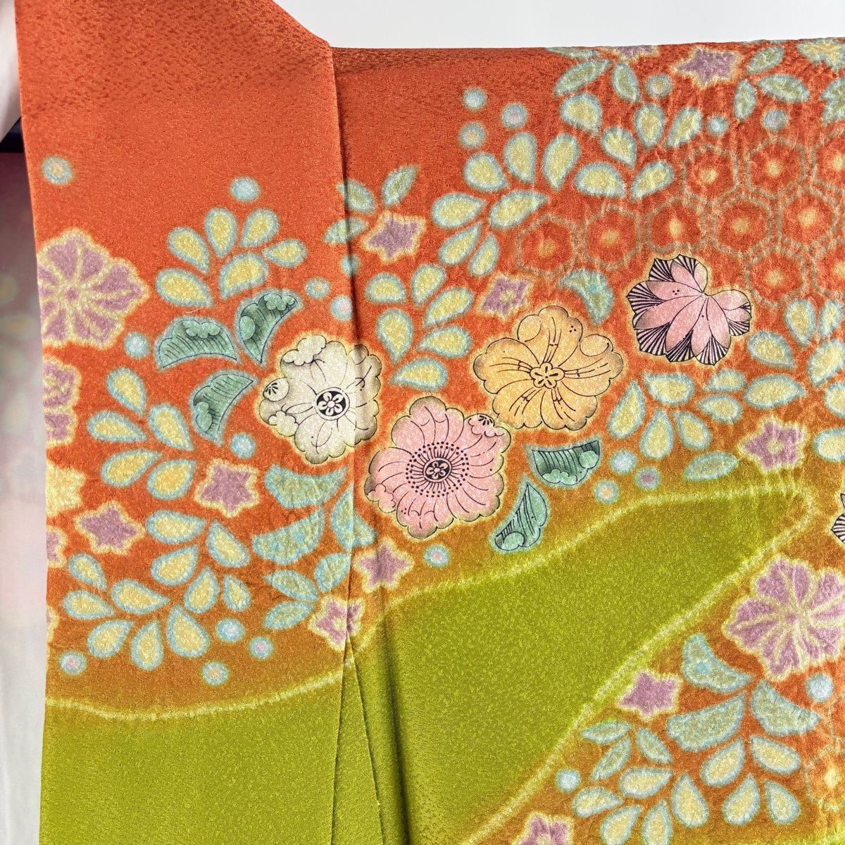 振袖 身丈160 cm 裄丈66 M 袷 辻が花柄 花菱 金通し 染め分け オレンジ 正絹