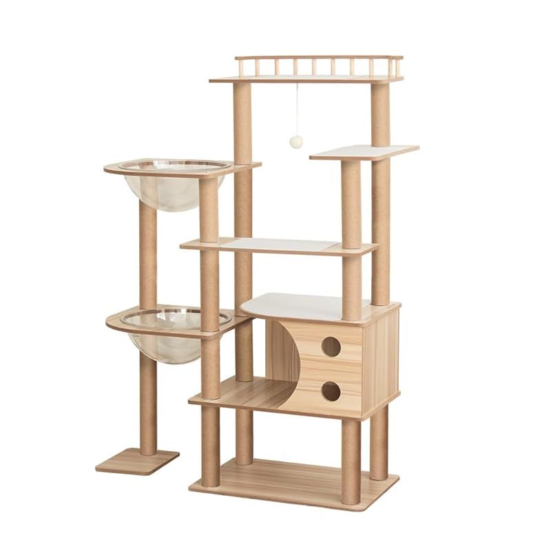 キャットタワー 木製 据え置き おしゃれ シニア 大型猫 宇宙船 滑り止めマット付き クリアボウル 大型 安定性高い どっしり インテリアに馴染み インテリア性高い 天然木目 1