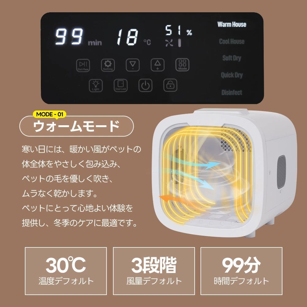 ペットドライルーム ペットドライヤー 終了後自動あけドア ペットハウス ドライヤー ボックス ハウス ドライルーム 猫 犬 ペット乾燥機
