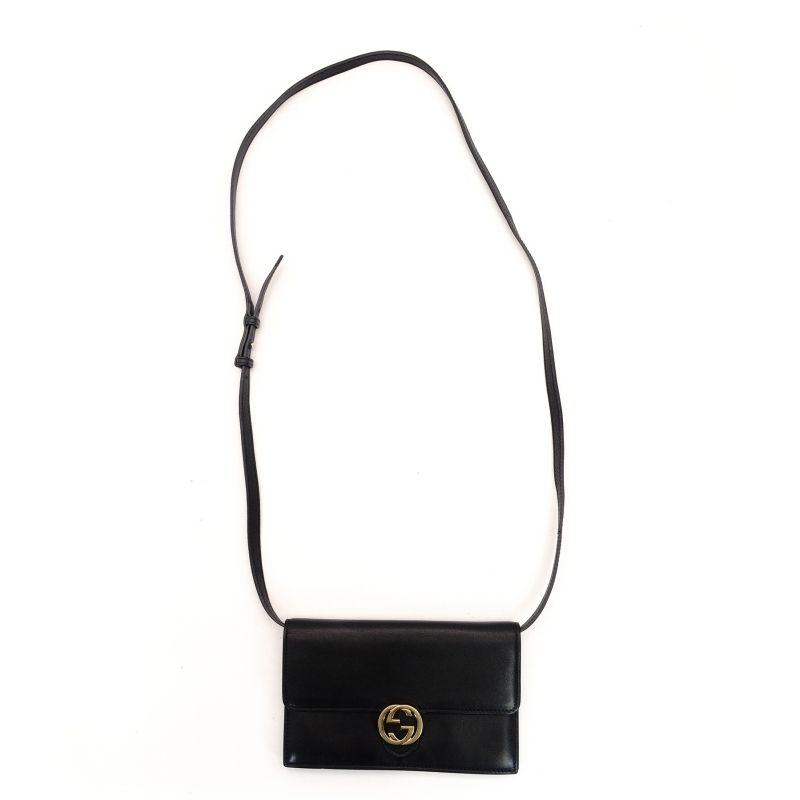 グッチ GUCCI インターロッキング ブラック レザー GGロゴ ゴールド金具 黒 クロスボディ 7-9-028