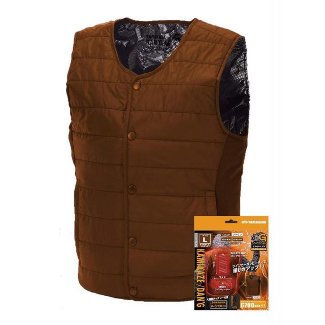 ヒートベスト 暖G KDG-C-L-SET バッテリーセット 山真製鋸 神風 バッテリー付 6700mAh Lサイズ ブラウン ヒーター ベスト