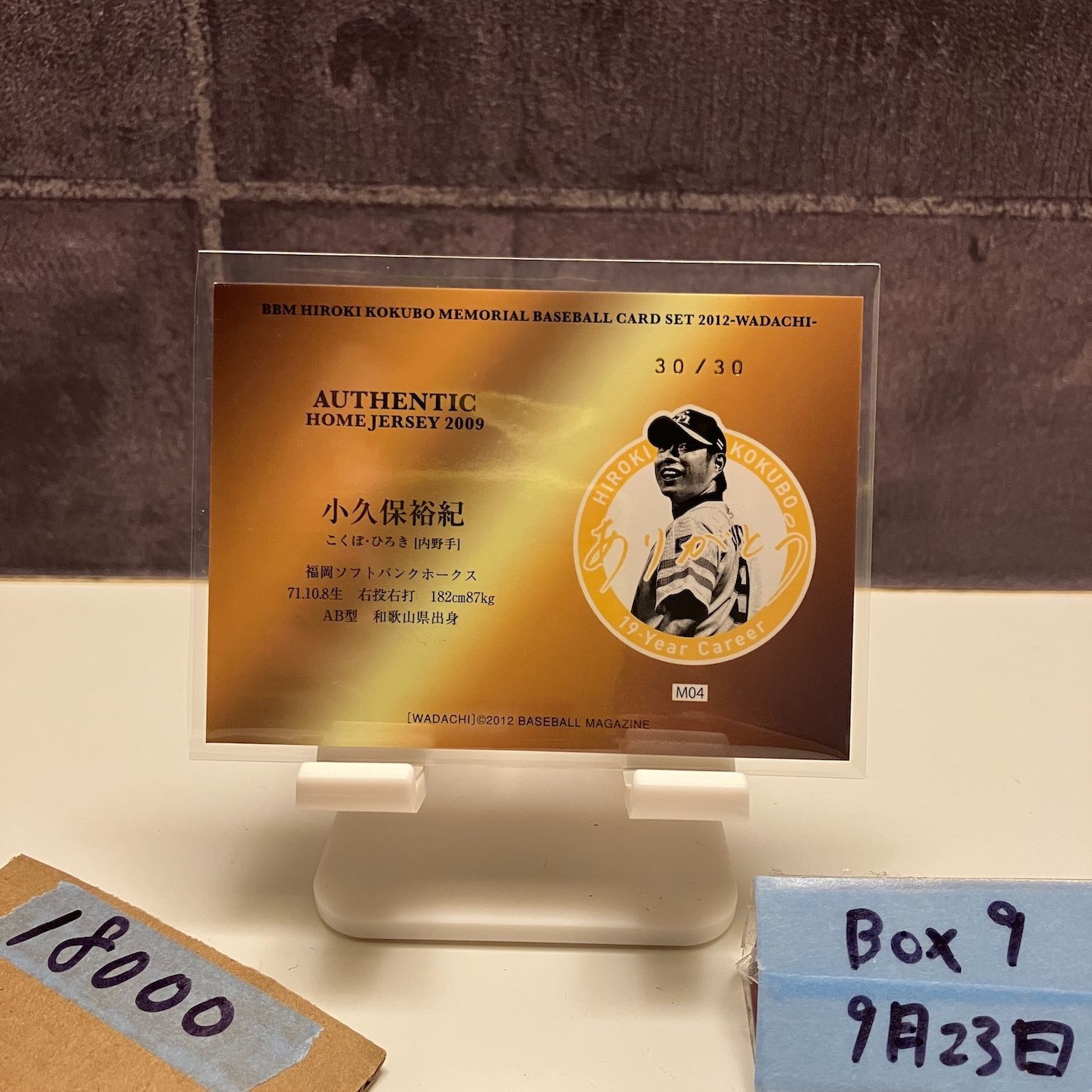 2012 BBM MEMORIAL WADACHI 小久保裕紀 30/30 福岡ソフトバンクホークス Home ジャージ 2009 パッチ