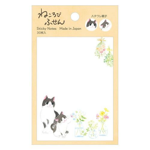 古民家で暮らすねこを描いた、筆記面がたっぷりある使いやすいふせんです。庭で摘んだ花やグリーンのアレンジメントに興味津々の子猫と親猫の愛らしい仕草を描きました。猫種:日本猫(ハチワレ猫)【検索ハッシュタグ】#エヌビー社#エヌビー#ふせん#付せん#付箋#ねころび#子猫