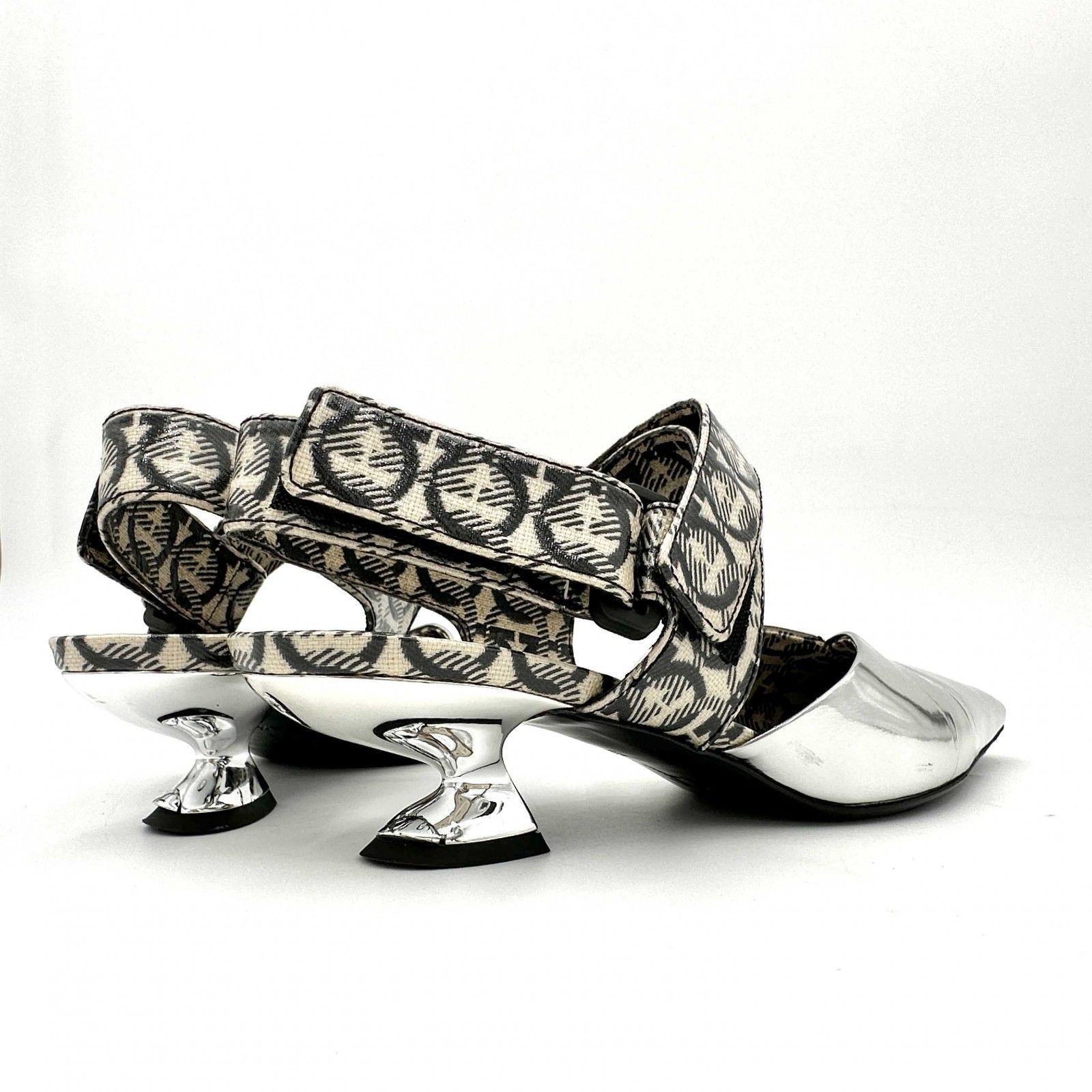 激 Ferragamo ミュール ガンチーニ エナメル シルバー 865 T