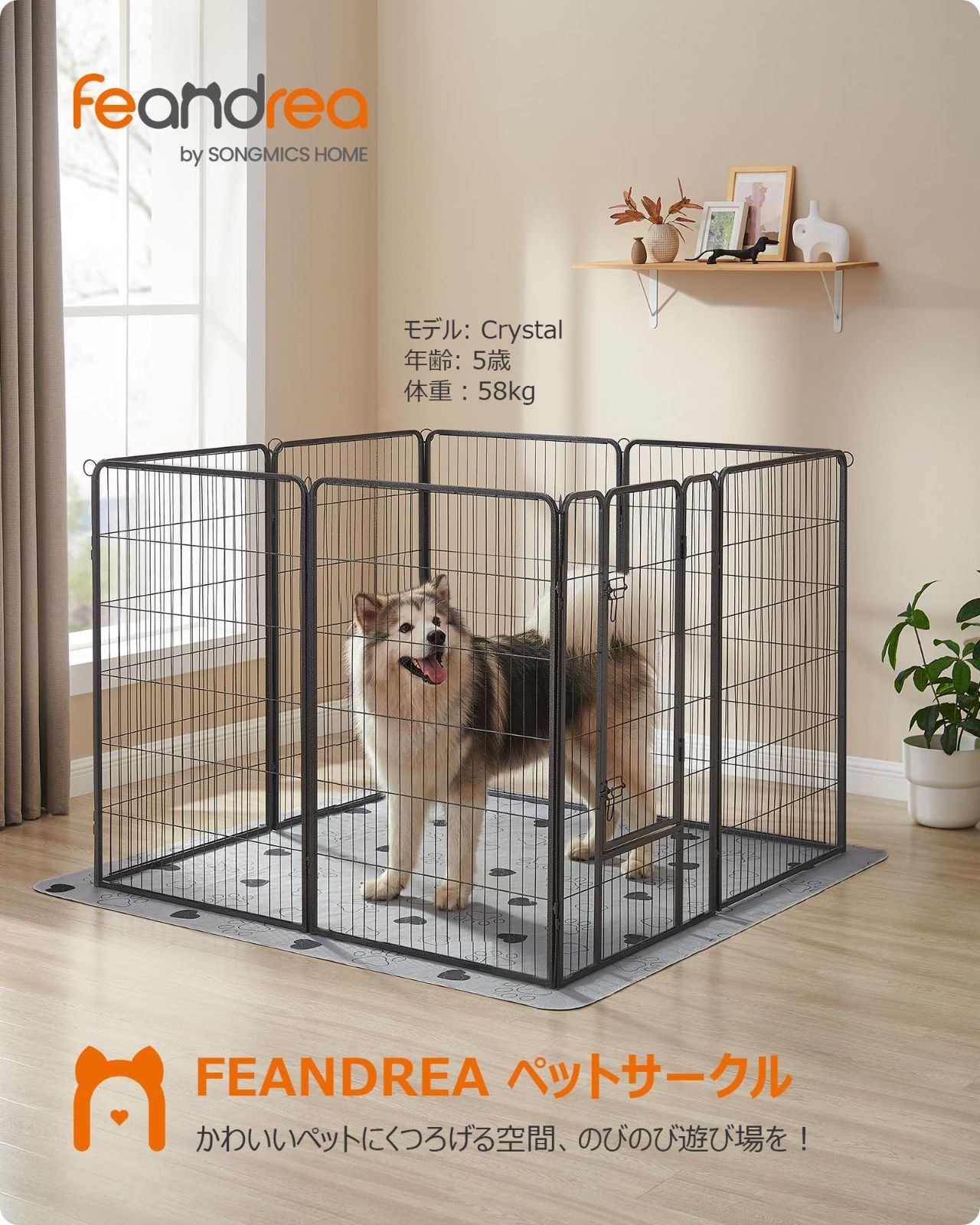 FEANDREA ペットサークル 高さ120cm 大型犬用 超大型犬用 パネル8枚 複数連結可能 スチール製 組立簡単 折り畳み式 犬ゲージ 全成長期使用可 室内外兼用 犬用サークル PPK012B01 ペットフェンス