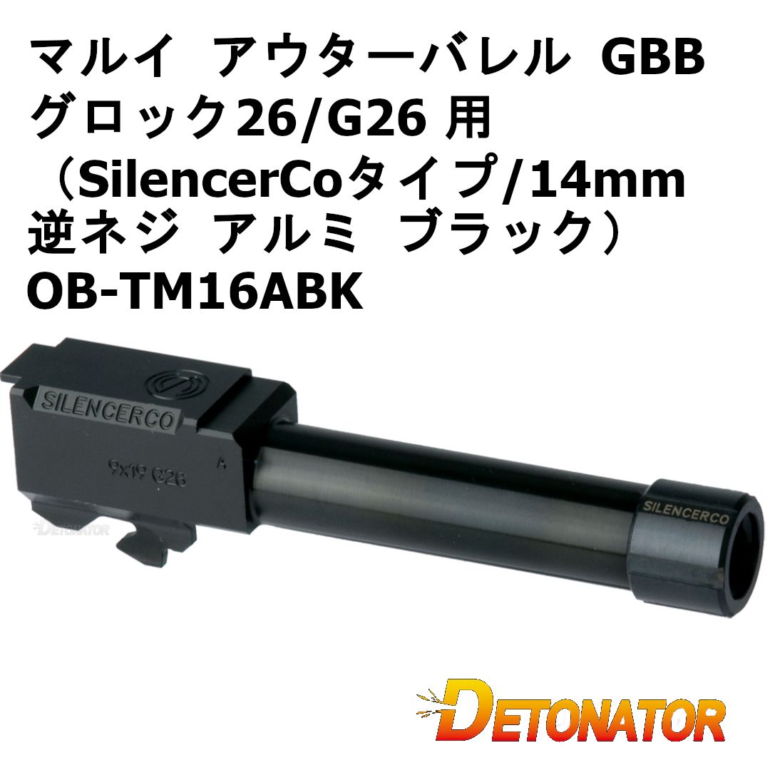 デトネーター アウターバレル 東京マルイ ガスブロ グロック26 G 26 用 SilencerCoタイプ 14 mm逆ネジ アルミ ブラック OB-TM 16 ABK