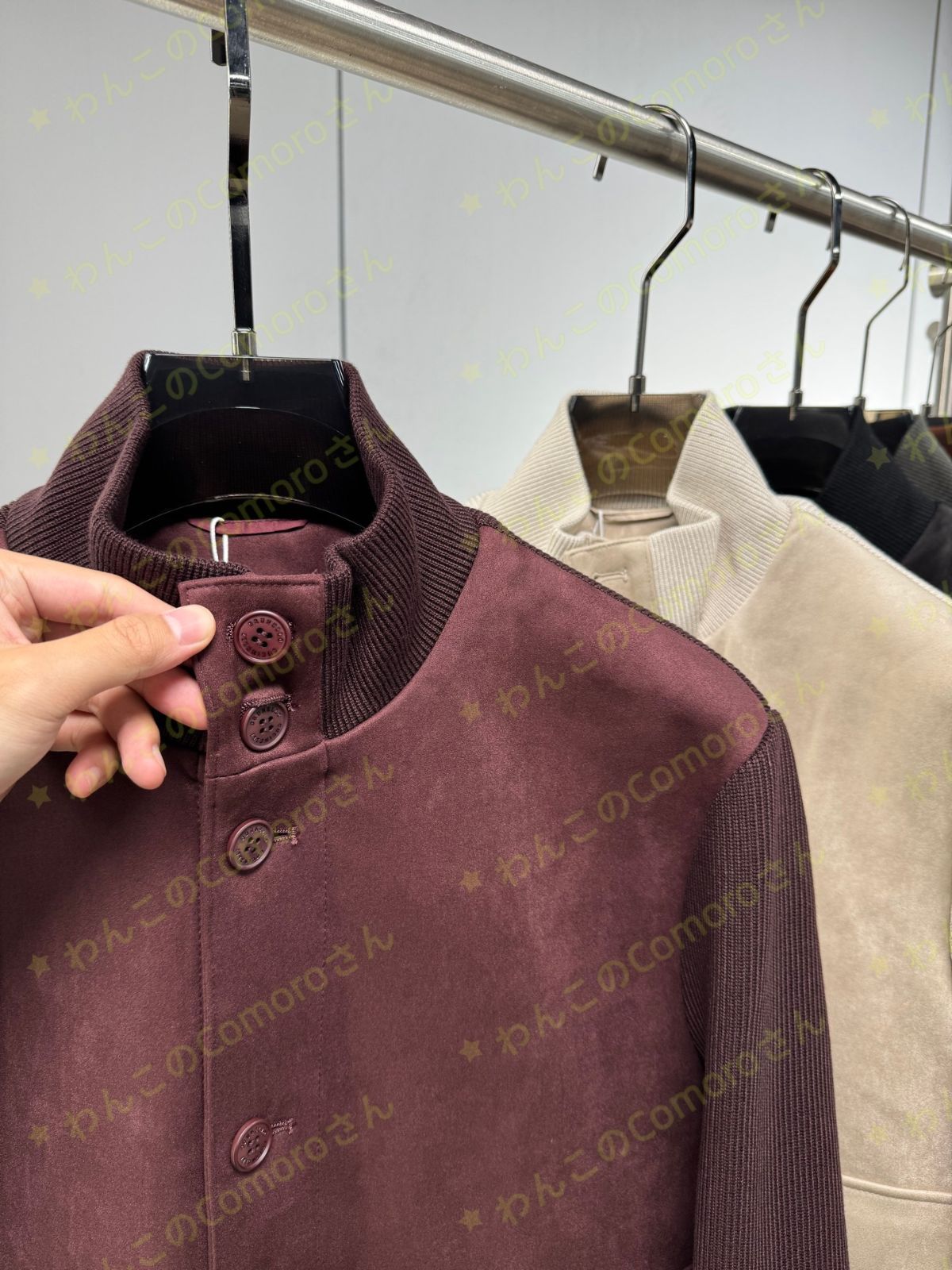 パープルM 3 XL ブルネロクチネリ メンズダウンジャケット ビジネスカジュアル スエードニット切替 秋冬シーズン向け