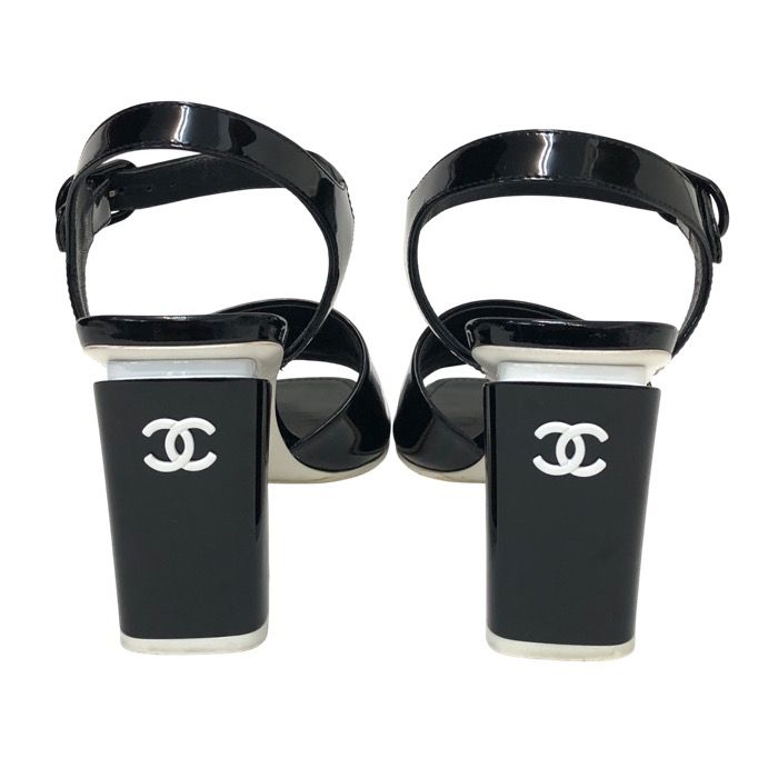 CHANEL シャネル ココマーク G 38684 サンダル パテントレザー ブラック 9.5 cmヒール サイズ37.5 24 cm相当 レディース