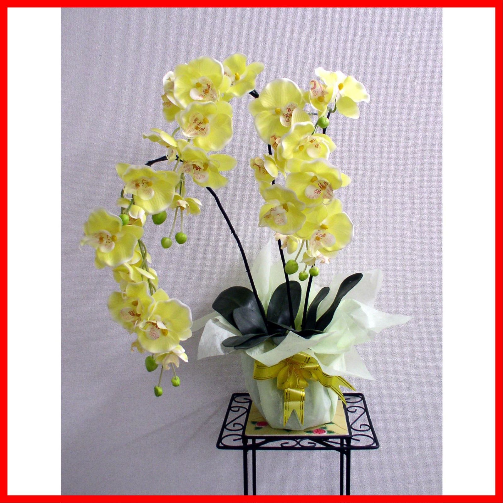 陶器 鉢 化粧箱 インテリアグリーン 入 イエロー 光触媒 高さ 人工観葉植物 55 cm 新築祝い 3本立ち 開店祝い 造花 ギフト プレゼント包装 胡蝶蘭 30174