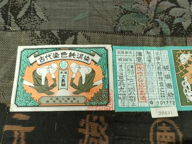 平和屋着物 本場大島紬 9マルキ 古代染色純泥染 草花間道 謹製 証紙付き 正絹 ps