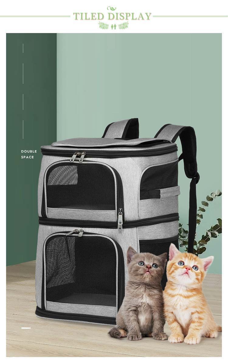 猫 2匹 リュック 分離可 キャリー 2層 ペット キャリーバッグ 小型犬 ソフトクレート 折りたたみ可 マット付き 2 way 通院用 ペットキャリー 猫用 犬 ペットキャリーケース 折