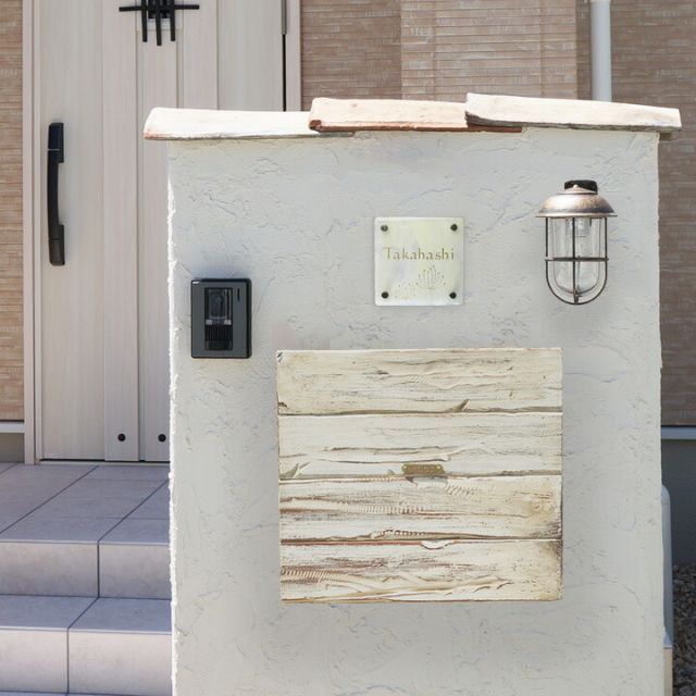 ブロカント感が漂う埋め込み型ポスト「Ante」は、金属製では味わえない「木」ならではの温かみのある風合いが特徴。