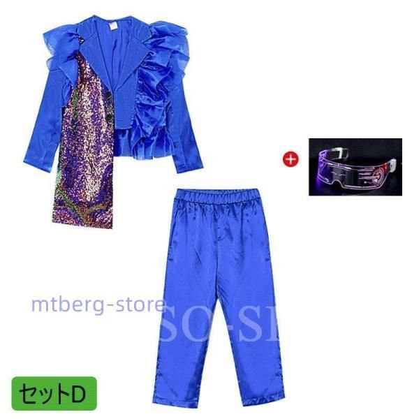 ダンス衣装 キッズ ブルー キラキラ セットアップ トップス パンツ 韓国 チアダンス衣装 かっこいい 演出服 応援団 練習着 ジャズダンス ガ 今週 ZZ 520