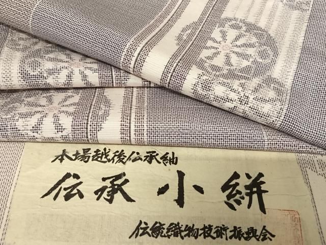平和屋着物 本場越後伝承紬 伝承小絣 源氏車間道 反端付き 正絹 zg