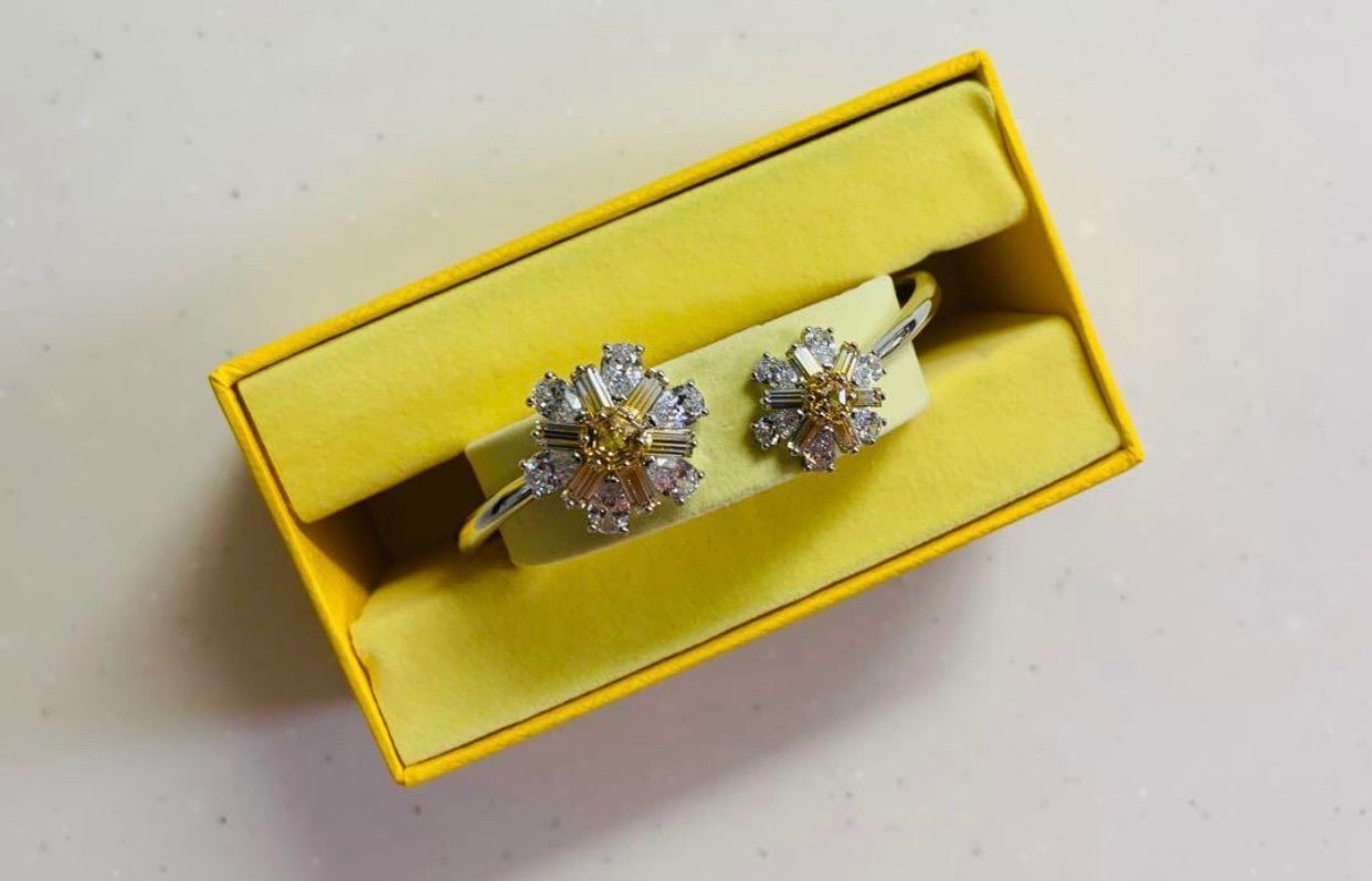 スワロフスキーSwarovski Idyllia バングル フラワー イエロー M