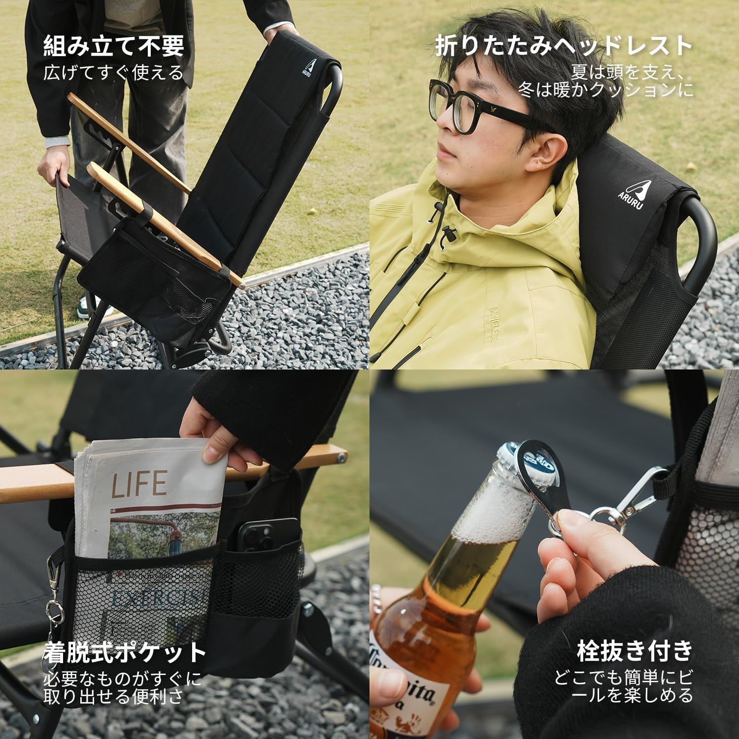 数量 ブナ材肘掛け 全季節快適 温かいクッション 折りたたみ式 4段階調節 アウトドア バーベキュー 焚き火対応 リクライニング ARURUキャンプ椅子