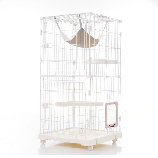 OSJ猫ペットゲージ小動物ケージ猫用エンクロージャ掃除しやすいトレーケージキャットケージ2段多頭飼い引き出しトレー自由 ウサギケージ猫ドアキャットハウスペットゲージ