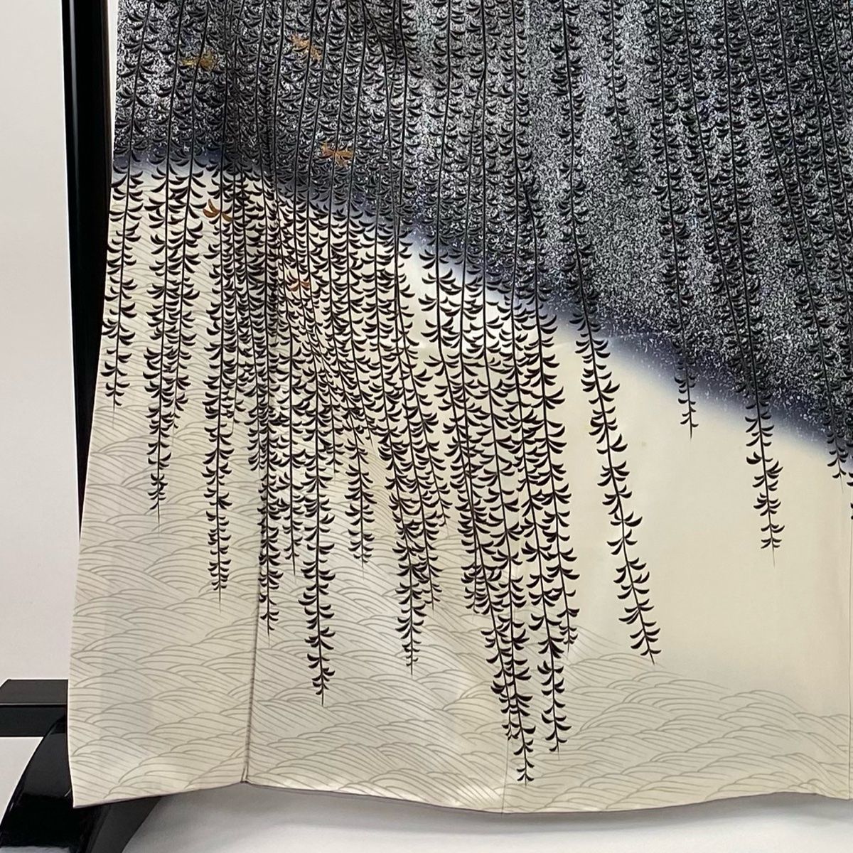 訪問着 身丈165 cm 裄丈67 M 袷 柳 波 金糸 染め分け 黒 正絹 秀品