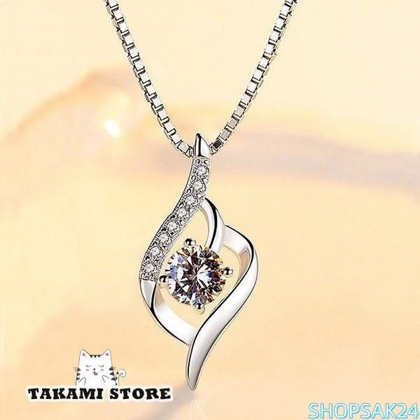 ネックレス レディース 一粒 大粒 豪華 CZダイヤ 天使 プラチナ仕上げ シルバー925 ホワイトデーお返し プレゼント ギフトネックレス通販685
