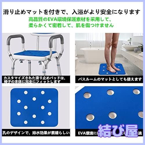 シャワーチェア 6段階高さ調節 軽量 丈夫 お風呂椅子 背もたれ付き 取り外し 手すり シャワークリップと滑り止めマット付き アルミ合金フレーム 介護ダイニングチェア 転倒防止 ベンチ 立ち上がり補助 入浴用品 日本語説明書付き 肘掛け付き