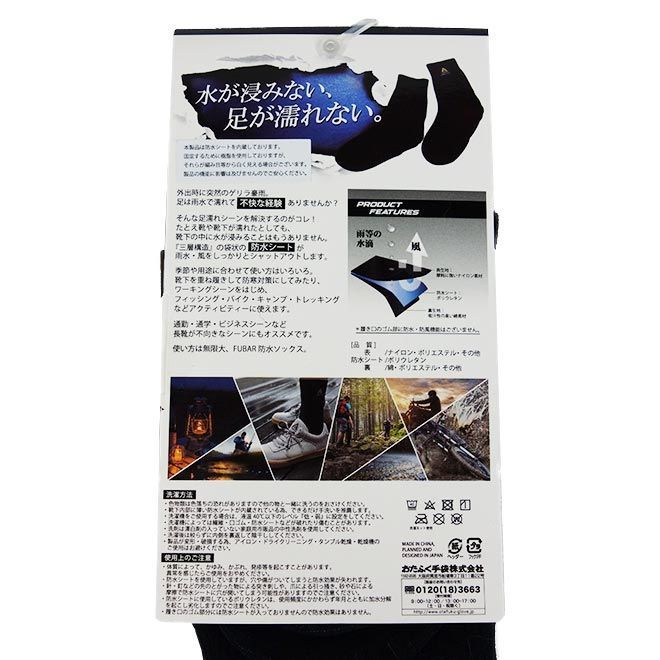 ソックス メンズ 靴下 な セット 防水 防風 自転車 バイク アウトドア 釣り 登山 通勤 通学 おたふく手袋 フーバー FUBAR FB-505