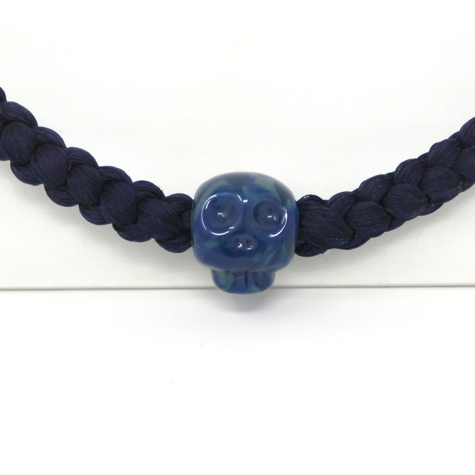 羽織紐 手組紐 蜻蛉玉 無双 正絹 ガイコツ どくろ 骸骨 紺 青 メンズ 男