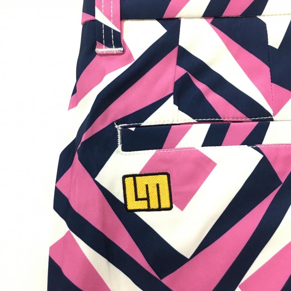 ラウドマウス パンツ ピンク×ネイビー×白 総柄 スクエア ストレッチ タンブラーネイビー メンズ S ゴルフウェア LOUDMOUTH