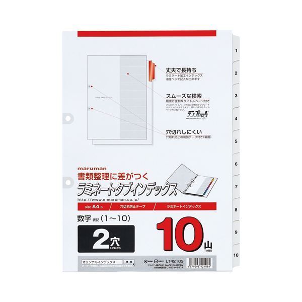 まとめ マルマン 2穴 文字入り ラミネートタブインデックス A 4タテ 数字 1〜10 10山 扉紙 LT 4210 S 1組