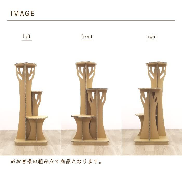 【強化ダンボール製】樹木のイメージの組み立てタイプのキャットタワー。ねこちゃんが大好きなダンボール製で、素朴な風合いのクラフトカラーでお部屋にマッチします。
