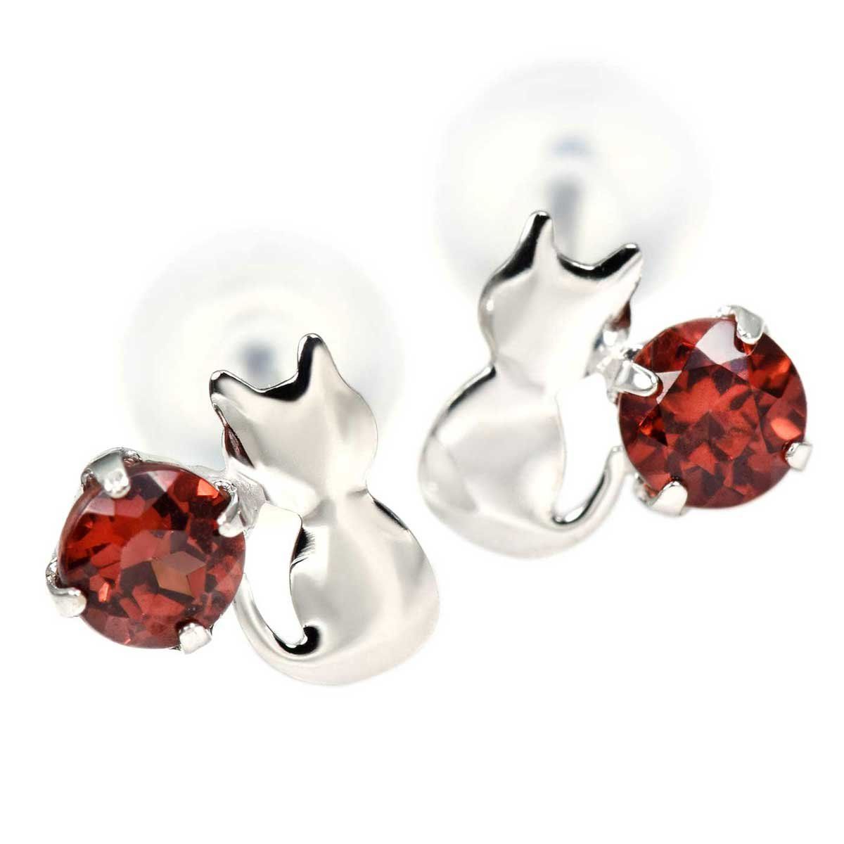 ガーネット ピアス プラチナ 猫 両耳用 シルエット キャット ネコ スタッド 雑貨 1月 誕生石